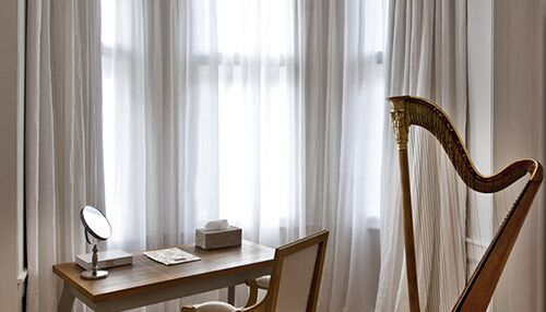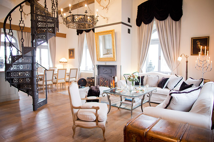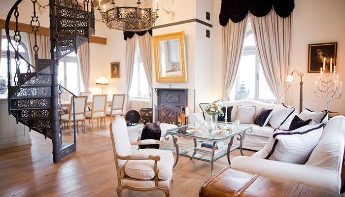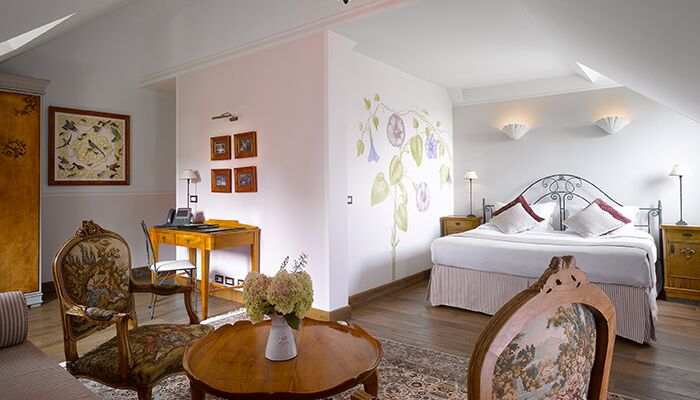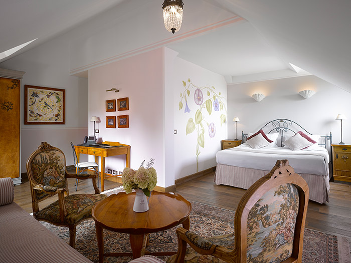 Each room has its own unique style and name and is carefully furnished with a discerning eye for detail. The first floor is called the Floor of the World. The second floor follows the theme of Time. All rooms have views of the natural beauty of the English park and the St. George Forest.