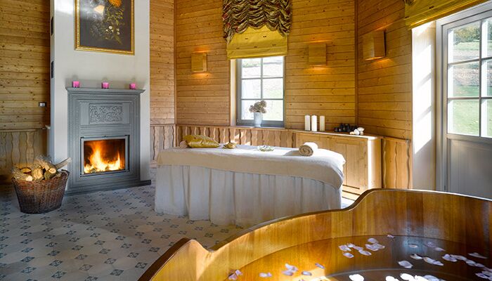 The uniqueness of Mcely Spa consists of the interconnection of interior and exterior therapeutic suites, which offer a relaxing and inspiring environment for an exceptional spa experience. Guests can enjoy their spa therapy in either the Chateau, on the highest floor of the tower, or in the park pavilion with open fire. All therapeutic rooms are suitable for two persons so that couples can have their therapies together. In addition to massage and body treatment offer can guests relax in Finnish sauna, outdoor Jacuzzi or they can swim in bio-lake with private white-sand beach. In Mcely Spa boutique it is possible to buy hotel own Mcely Bouquet cosmetics line, which is being used during the treatments.