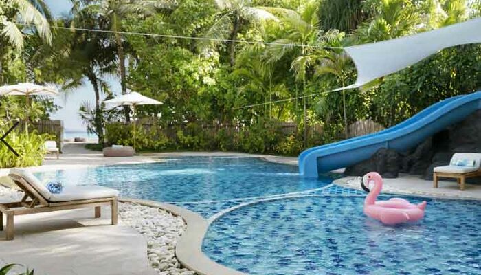Private beach and gardens, outdoor dining pergola, 12.5-metre-long infinity pool