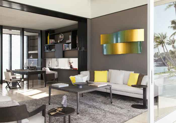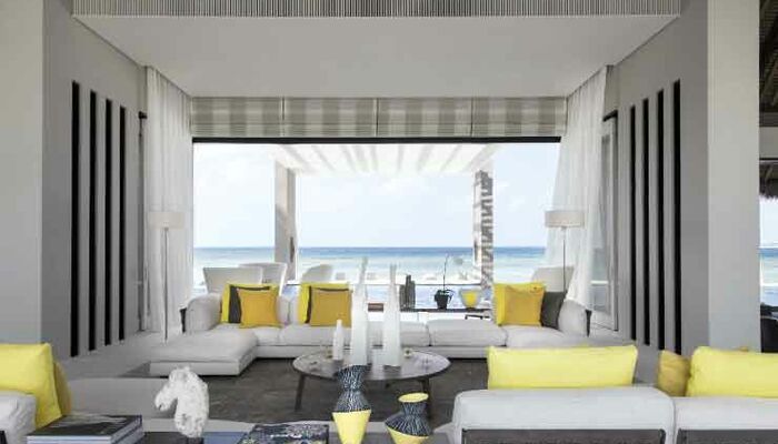 Designed by renowned architect Jean-Michel Gathy and conceived in synergy with the island’s natural surroundings, the Maison is enhanced by lavish residential details, with furnishings made from traditional island materials - rattan, bamboo, mother of pearl - enhanced by a vivid palette of signature pop yellow, demure taupe and airy whites.