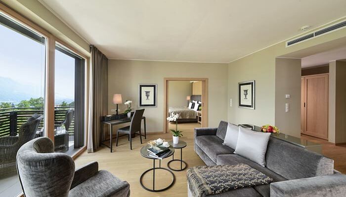 for 2 persons | 50m2, Suite with separate bedroom and living areas, large balcony with view of Merano, bath and shower or just shower, separate WC, wood flooring, two satellite TVs, wifi, radio, phone, minibar and safe and air conditioning.