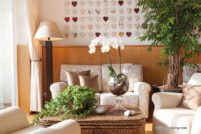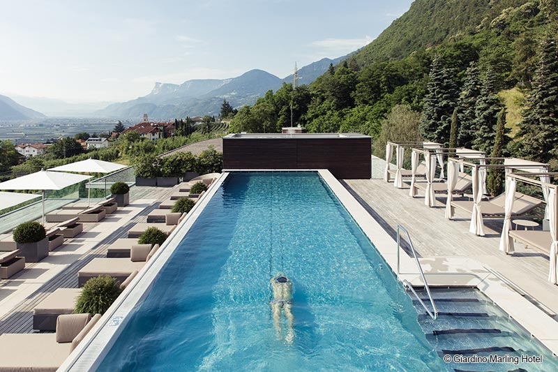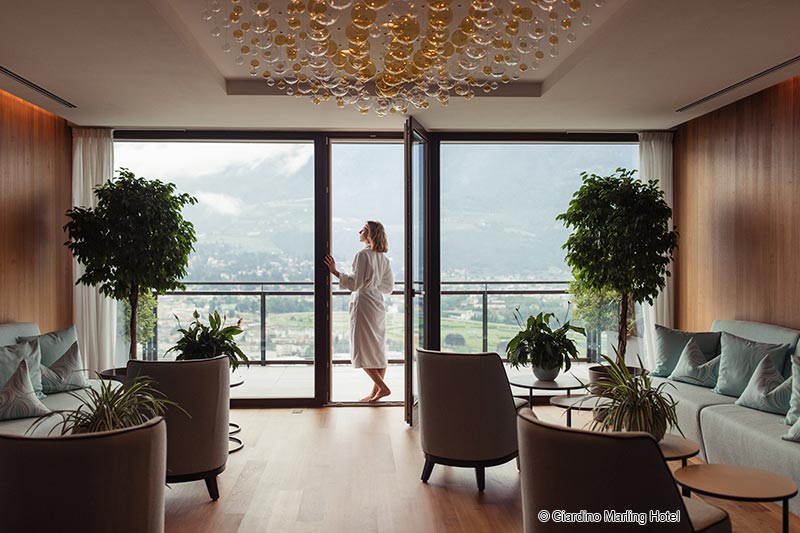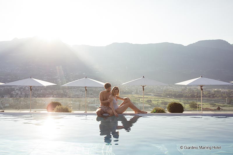 A thousand varieties of green, undisturbed relaxation and recuperation, uninterrupted views of the surrounding mountains, valleys and forests... and complete stimulation of the senses: this is the Giardino Marling Spa Hotel, a mediterranean beauty in the heart of the Alps, a high-level hideaway and an establishment with both an elegant ambience and a fine sensibility.
