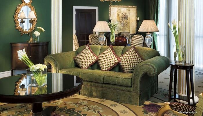 Junior Suite: Separate parlor with TV, telephone, honor bar and residential furnishings, Quilted velvet and silk wall coverings, King bed, Steam shower, Two telephone extensions and one direct telephone line (DID service), Multi-lingual TV service, CD player.